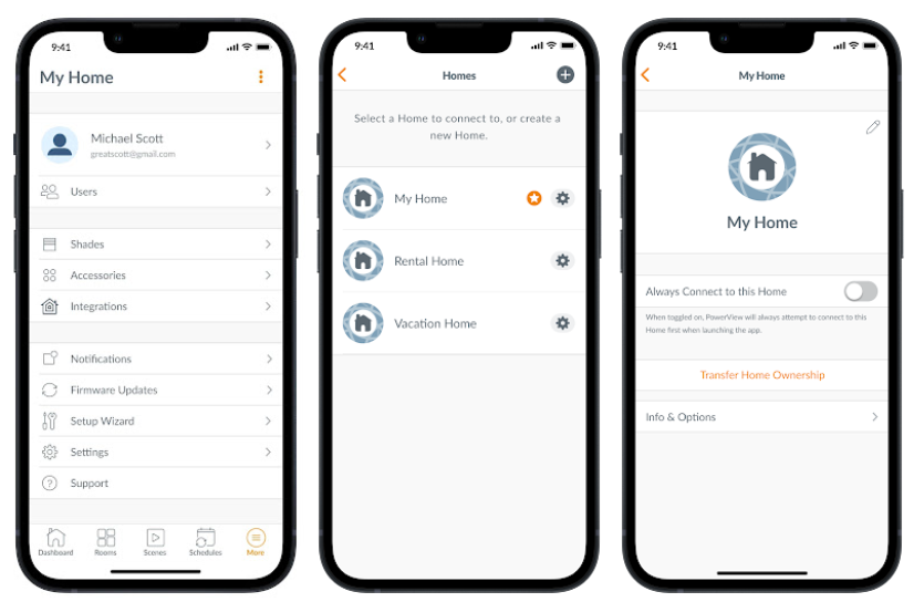 In PowerView® Gen 3, the person who sets up the Home in the app is automatically the Owner. Ownership gives full access to the Home and controls who else can join. Sometimes ownership needs to be transferred—for example, from an installer to the homeowner.