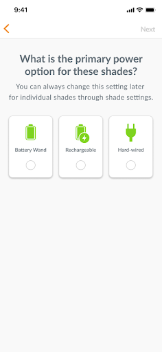 Choose the primary power source used in the Home (battery wand, rechargeable, or hard-wired)