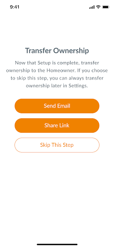 Installers: Follow the app prompts to transfer the Home using the homeowner’s email or mobile number
