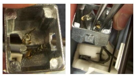 - Use needle nose pliers to pull the cord out of the narrow slot.