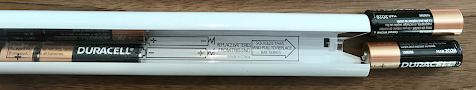 Ensure the protruding (+) and flat (-) battery ends match the wand diagram.