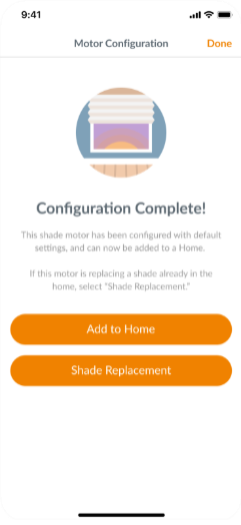 - You will then be prompted to choose between “Motor Configuration” and “Shade Replacement.” Select “Motor Configuration.”